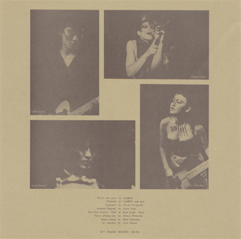 Words and music by ALLERGY Produced by ALLERGY and Mr.K Engineerd by Hiroshi Kuramochi Assistant Engineer by Akira Ando Recorded January 1983 at Mod Studio Tokyo Sleeve photography by Minoru Watanabe Art direction by Yumi Aihara