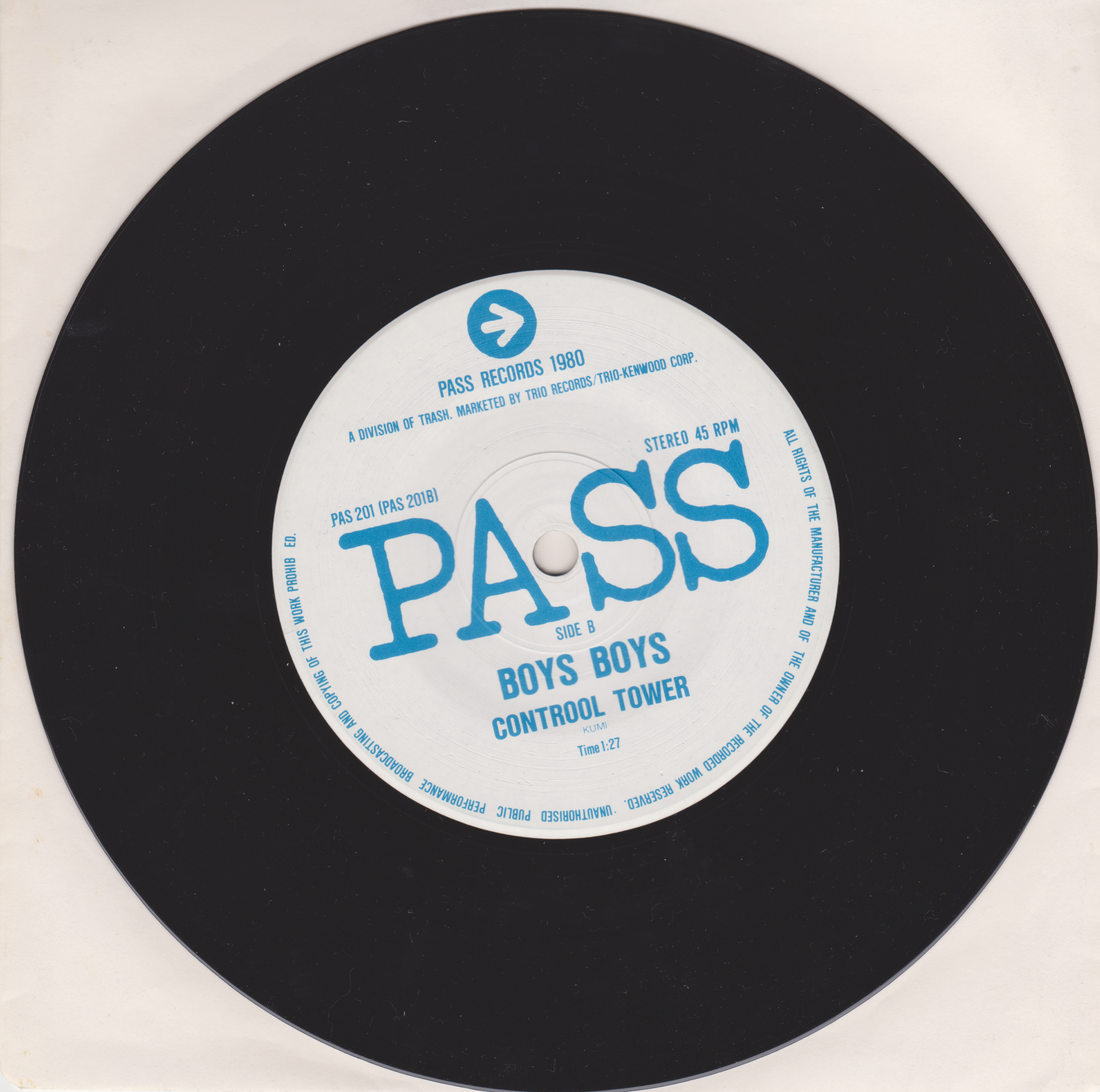 1980年:7インチEP:PASS RECORDS(PAS-201):A DIVISION OF TRASH,TRIO RECORDS/TRIO KENWOOD CORP.