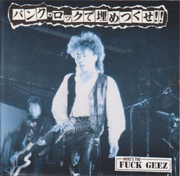 | FUCK GEEZ ARE YUMIKES VOCALS GIL-kun DRUMS HELP PLAYER PIY(WALTZ):GUITAR RECORDED BASS PLAYER:YUMIKES ALL PRDUCED BY FUCK GEEZ ALL SONG ARRANGED BY FUCK GEEZ RECODING STUDIO AT GORILLA STUDIO MAR.22-23.1986 ENGINEERED BY Mr.MURAKAWA PHOTO BY HIROSHI OSHITANI&TOMOHIRO DESIGN:YUMIKES THANX TO KEIGO,KOUMORI&IZUMI KUBO |