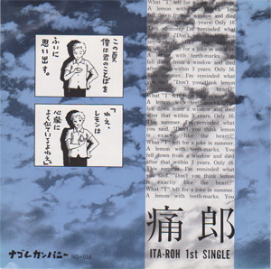 痛郎(ITA-ROH) 井手宣裕/B.Vo 大橋義典/G 浜田一孝/Dr.Vo(B-1),Flu RECORDED at STUDIO EGM Spring'88 Produced by ITA-ROH Special Thanks to KERA & NAGOMU-Co. MASAYUKI-MORI LOFT YANEURA AND YOU!! Contact Please on GIGS with Your Smile