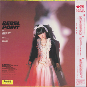 ALL PRODUCED BY キャ→ RECORDED at MAGNET STUDIO,MARCH'86 ENGINEER:EIJI MAKINO MASANORI CHINZEI ART DIRECTION:KENTARO HONZAWA (BEE FACTORY CO.,LTD) PHOTOGRAPH:SHINOBU KAYABA ILLUSTRATION:MICHIKO HIRAKAWA MANUFACTURED AND DISTRIBUTED BY SPANKIDS RECORD