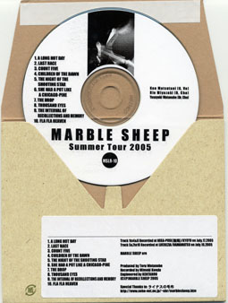 MARBLE SHEEP are Ken Matsutani(G,Vo) Rie Miyazaki(B,Cho) Yasuyuki Watanabe(Dr,Cho) Produced by Toru Watanabe Recorded by Mimaki Konda Engineered by KENTAROU (C)(P)MARBLE SHEEP 2005 Special Thanks to ライナスの毛布 |