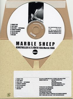 Recorded at KUNSTKELLER O-27,FURTH 15th March 2006 MARBLE SHEEP are KEN MATSUTANI(G,Vo) TAK(G,Vo) RIE MIYAZAKI(B,Cho) MORIHIDE SAWADA(Dr,Cho) TARO ARAKAWA(Dr,Cho) Produced by Toru Watanabe Recorded by KEN MATSUTANI Engineered by KENTAROU Photo:Morihide Sawada (C)(P) MARBLE SHEEP 2006 Special thanks to: DRIVE BY SHOOTING, THE PSYCHEDELIC AVENGERS |
