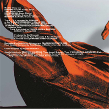 Marble Sheep are KEN MATSUTANI: Guitar, Vocal TAK: Guitar, Chorus RIE MIYAZAKI: Bass, Chorus TARO ARAKAWA: Drums, Chorus MORIHIDE SAWADA: Drums, Chorus Track 1,2,4 recorded by SUNHAIR at CAFE CAIRO/ WURZBURG 16 March 2006 Track 3,5,6,7 recorded by MISCHU LOOSLI at DACHSTOCK REITSCHULE BERN/ SWITZERLAND 19 March 2006 Track 8 recorded by YENSIN JHAN at BASTARD/ BERLIN 12 March 2006 Produced by Rie Miyazaki Co-Produced by Toru Watanabe & Ken Matsutani Licensed through MARBLE SHEEP (C)(P) 2006 Remastered by Souichirou Nakamura at PEACE MUSIC/ TOKYO 2006 Final Version Mastered by Tom Meyer at Master & Servant, Humburg Cover designed by Hayato Nobuoka Special thanks to DRIVE BY SHOOTING (Timo, Angel,Brumm), Timo (PSYCHEDELIC AVENGERS), Piet, All organizers, Peron(FAUST) who drove us to take to the airport in staying up all night. All people who offered us beer, meal, bed and weed. |