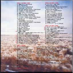 | 01.電動コケシ/THE STALIN 02.肉/THE STALIN 03.ロマンチスト/THE STALIN 04.STOP JAP/THE STALIN 05.NO FUN-cassette version-/THE STALIN 06.下水道のペテン師/THE STALIN 07.STOP GIRL/THE STALIN 08.爆裂(バースト)ヘッド/THE STALIN 09.LIGHT MY FIRE/THE STALIN 10.ワルシャワの幻想/THE STALIN 11.アレルギー-single version-/THE STALIN 12.GO GO スターリン-single version/THE STALIN 13.先天性労働者/THE STALIN 14.アザラシ-primitive version-/THE STALIN 15.水銀/THE STALIN 16.365/THE STALIN 17.天プラ/THE STALIN 18.虫/THE STALIN 19.解剖室/THE STALIN 20.廃魚/THE STALIN 21.飢餓々々帰郷 /遠藤ミチロウ+北田コレチカ+イヌイ・ジュン 22.仰げば尊し/遠藤ミチロウ 23.バキューム-live version-/THE STALIN 24.天井ペニス-live version-/THE STALIN 25.猟奇ハンター-live version-/THE STALIN 26.GASS-live version-/THE STALIN 27.豚に真珠-live version-/THE STALIN 28.Bird-live version-/THE STALIN 29.TRASH-live version-/THE STALIN 1,2は「電動コケシ」のオリジナル音源からのCD化 ![]() |