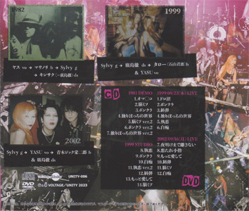 DVD 1999/09/23(木) LIVE 1.ドロ沼 2.ボンクラ 3.糾弾 4.独りぼっちの世界 5.執恋 6.白痴 2002/09/16(月) LIVE 7.夜明けまで離さない 8.悪たれ小僧 9.もっと愛して 10.糾弾 11.脳ミソ 12.白痴 |