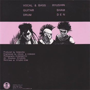 VOCAL & BASS RYUSHIN GUITAR SHAM DRUM DEN Produced by SAMURAI Engineered by ONUKI & CONISHI Photography:KUWAMOTO Art Direction:RYUSHIN Recorded at STUDIO EGM