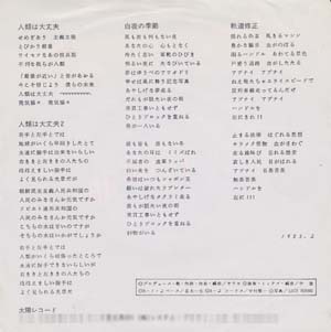 ◎プロデュース・歌・作詞・作曲・編曲/サワキ ◎演奏・ミックス・編曲/中望 ◎B-1・2ベース/並木一生◎A-2コーラス/中村堅一◎写真/LUCY HORNE