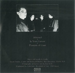 VOCAL:TANAKA GUITAR AND KEYBOARD:HATTORI BASS:FURUSAWA DRUMS:ITOH PHOTOGRAPH OF RIVERSE SIDE BY KOJI NISHI ENGINEERED BY TAKEMOTO REORDED AT TAKE 1989