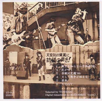 1,2,3:1987年4月29日 原宿歩行者天国「続・国家秘密法大反対ギグ」 4,5,6:1988年11月27日 日比谷野外大音楽堂「天皇制の賛美に抗議の声を!11.27集会」